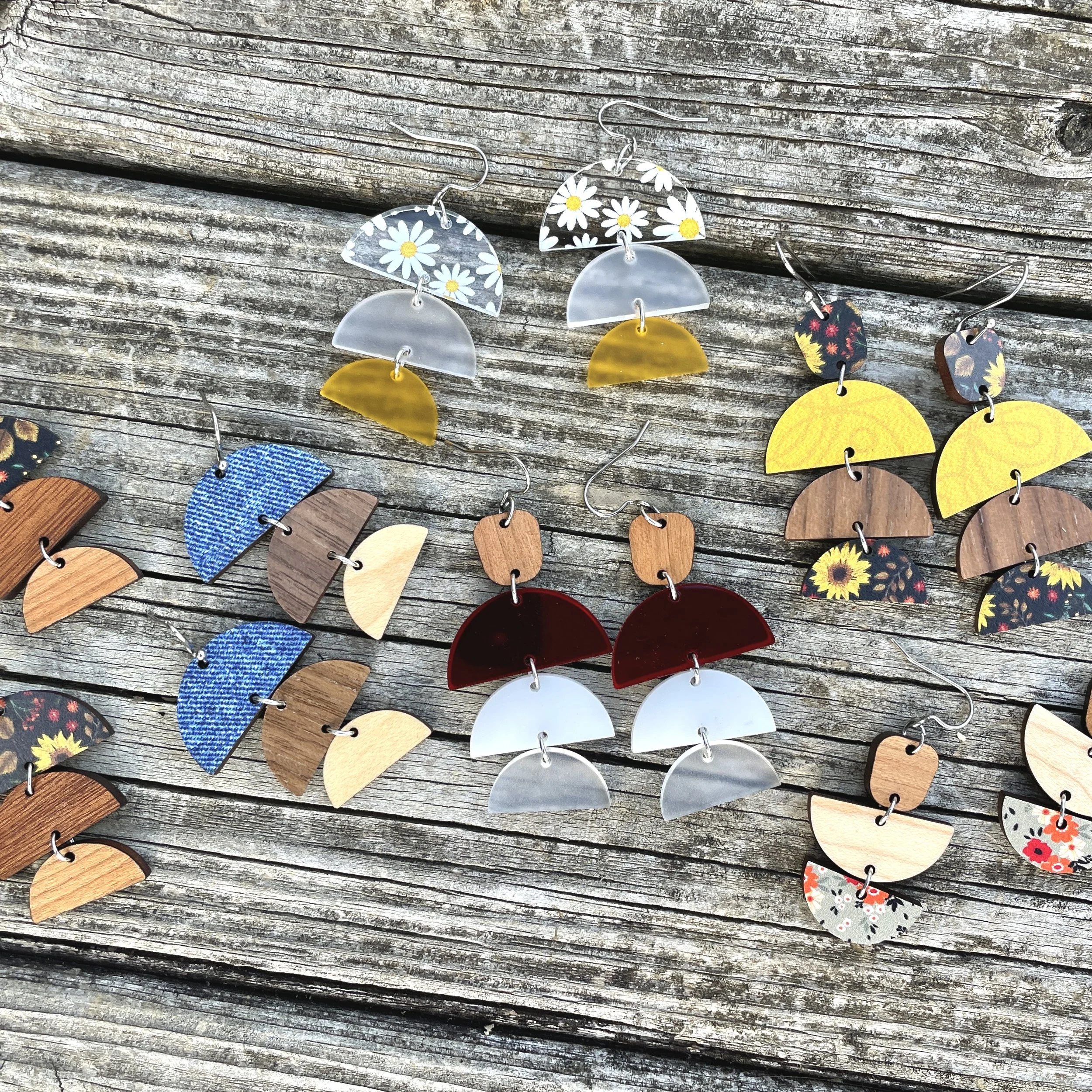 Choose from a variety of laser-cut materials to craft three, unique pairs of wooden earrings!
